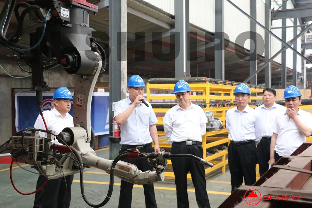 在公司領導的陪同下,張市長一行先后參觀了水泊焊割智能化裝備車間、汽車零部件智能化生產車間。