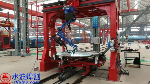 加強筋焊接機器人用于罐體封頭、隔板等加強筋的自動激光掃描、搬運、切割、焊接自動工序,采用PLC可編程控制器自動控制技術、圖形軌跡采集系統、工業計算機控制等技術,配備了圖形軌跡運動控制系統,使加強筋與封頭的連接處緊密結合,外形美觀,質量可靠、生產效率高、操作簡單方便等優點,不僅可提高工作效率,改善操作環境,而且能提高罐體封頭的自動化程度,可保證批量生產過程中可靠穩定的廂板成形質量,大大提升改裝汽車產業和壓力容器的產品檔次。而且它制作的加強筋成形外觀更加圓滑美觀,成形應力更小、使用壽命更長。它比手工測量、計算、劃線、裁剪、對中、矯正、焊接,工作效率更高、并可節省大量人力資源。